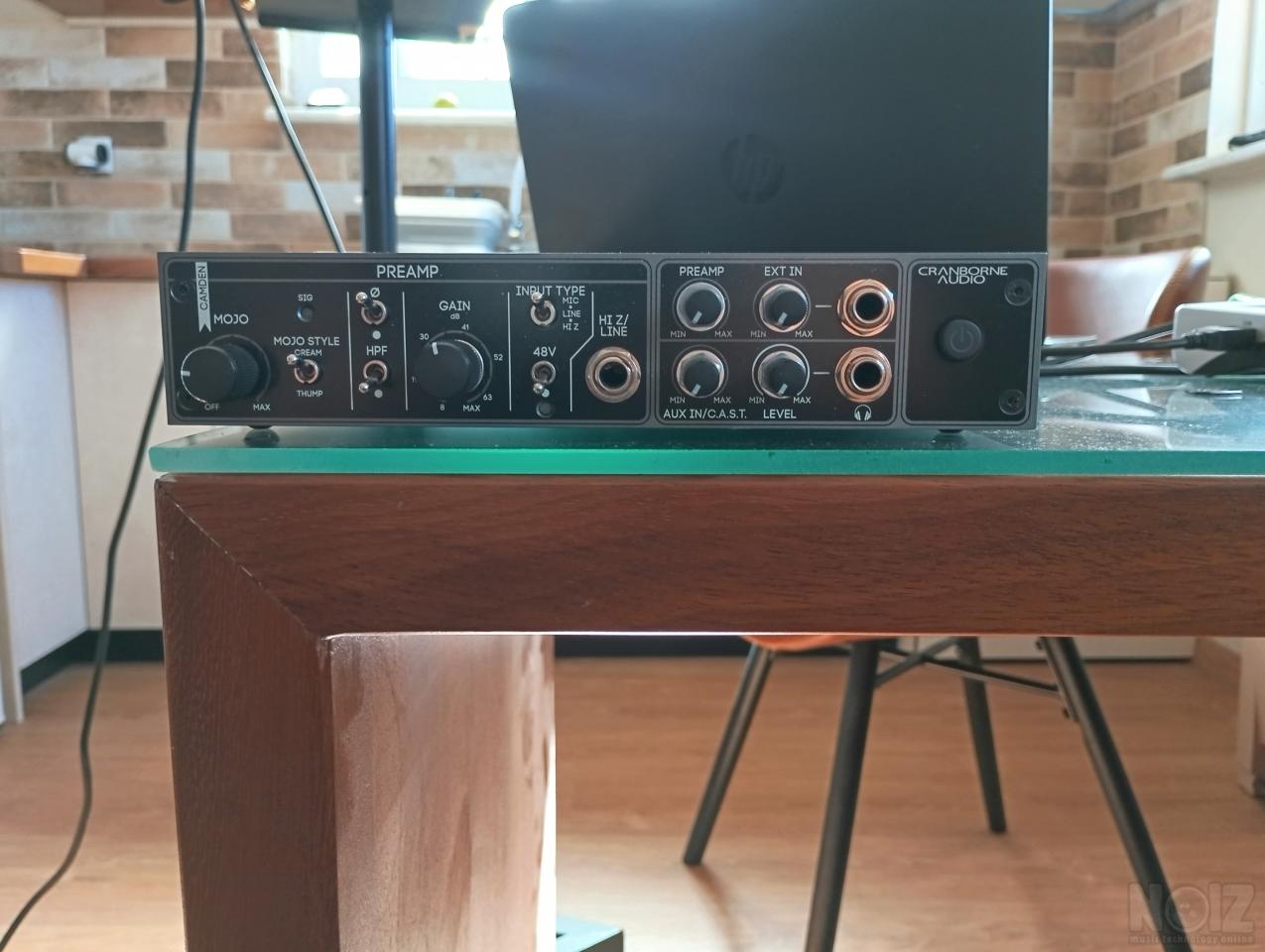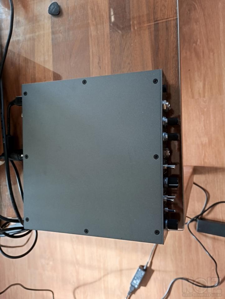 Προενισχυτής μικροφώνου με μικρά σημάδια από κάτω από το rack . Με το κουτί του και το τροφοδοτικό του .