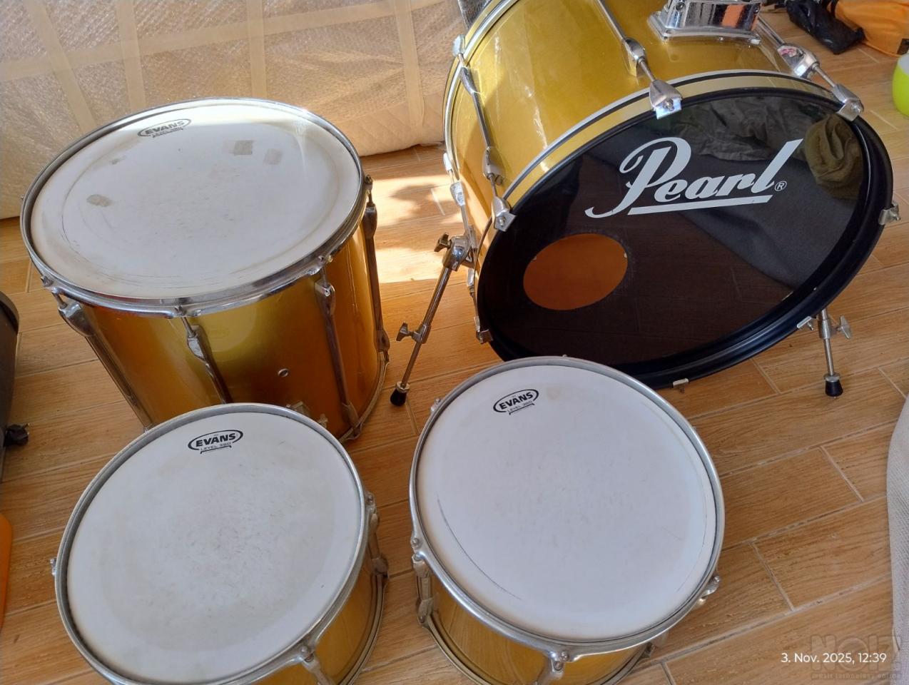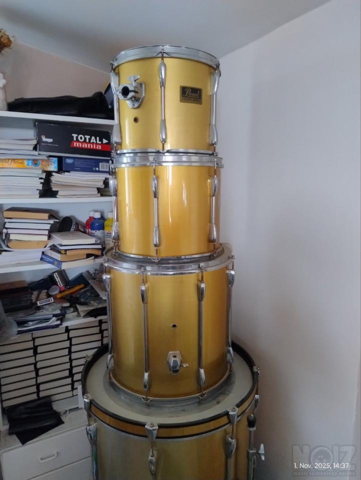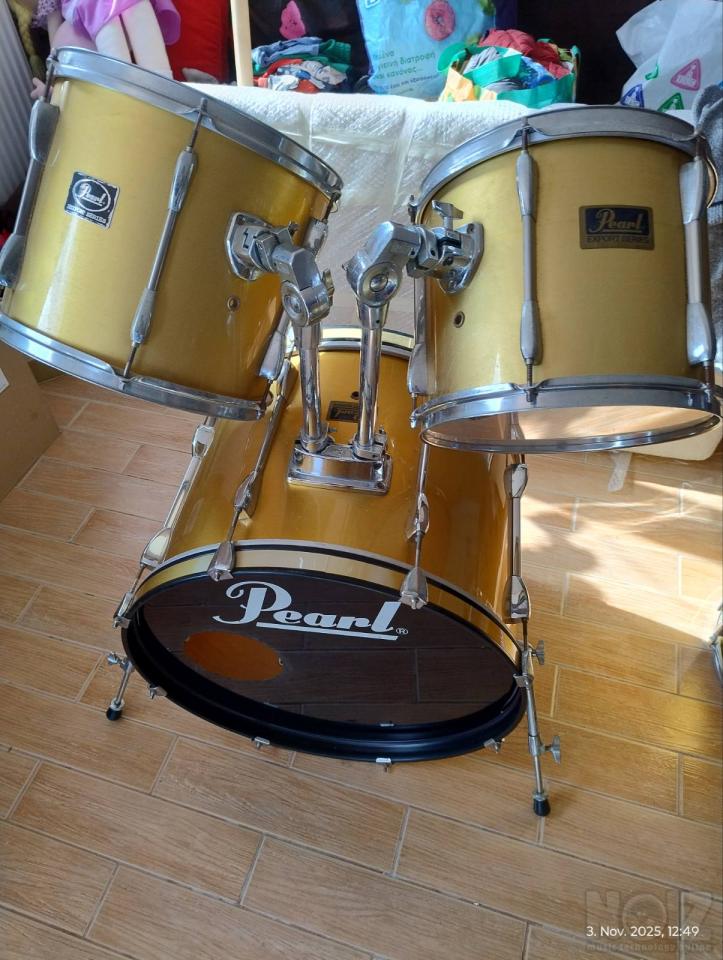 Πωλείται pearl export σε χρυσοκίτρινο χρώμα και Remo ταμπούρο, σε πολύ καλή κατάσταση.