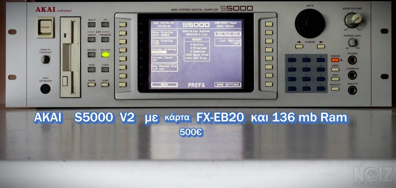 Sampler Akai S5000 V2, 20bit, σε άριστη κατάσταση με 136mb Ram μνήμη (64+64+8mb), κάρτα FX (EB20), cd με Akai ήχους (το έδινε η εταιρία με την αγορά).