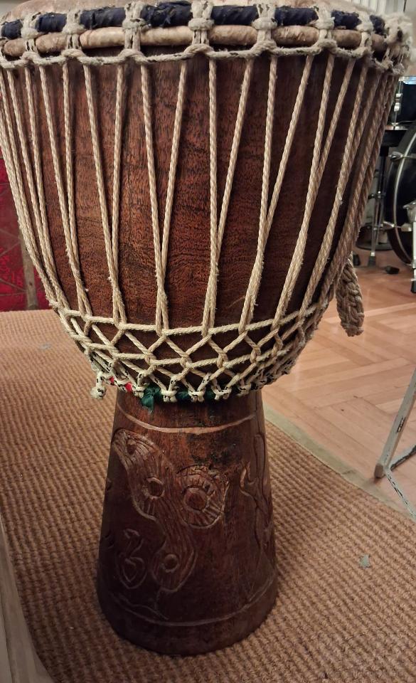 Δεν είναι βιομηχανικό djembe — είναι παραδοσιακό όργανο χειροποίητο, φτιαγμένο για επαγγελματίες. Τα djembes από Lenke ξύλο είναι σπάνια στην Ευρώπη και ιδιαίτερα στην Ελλάδα.