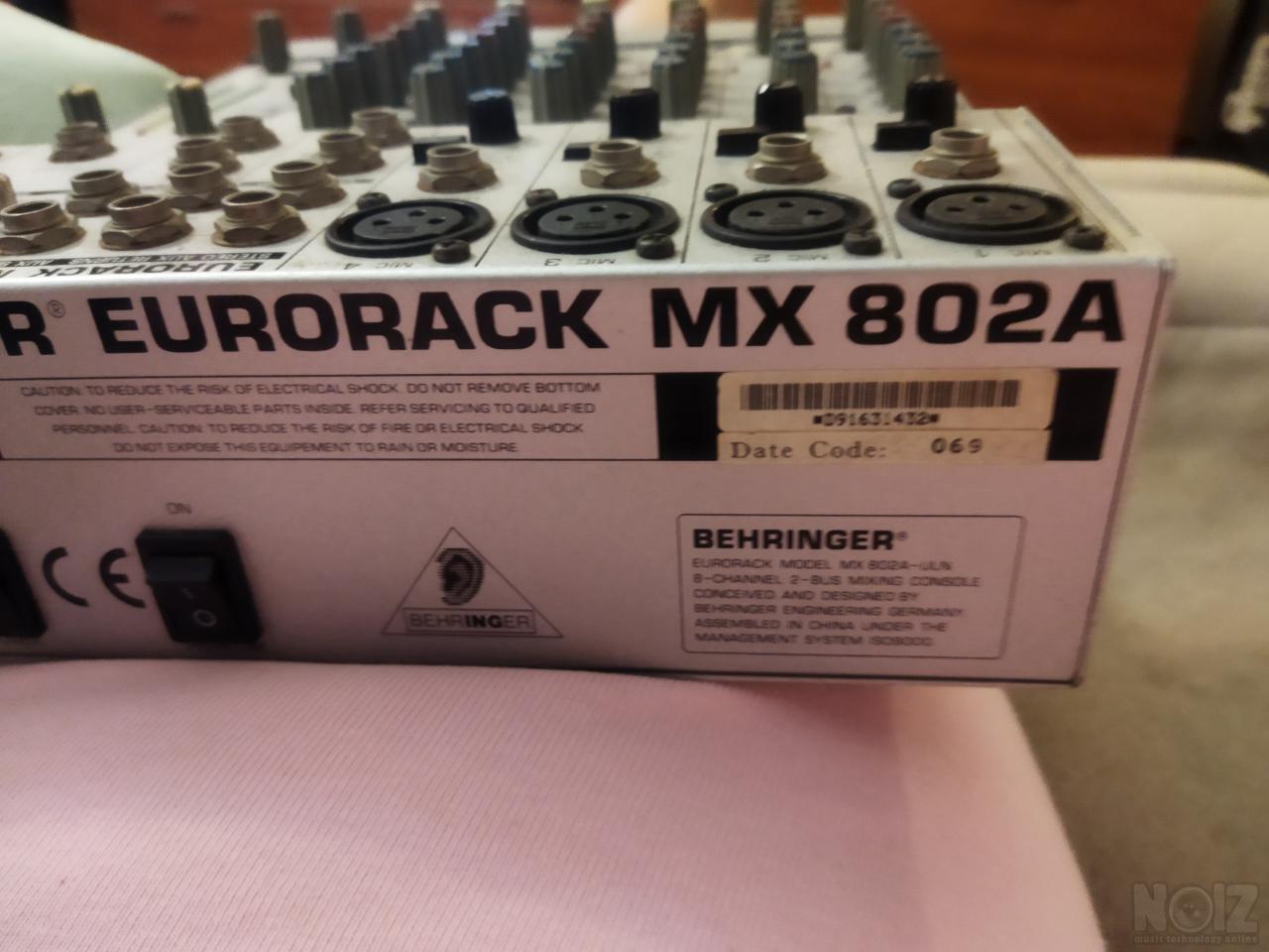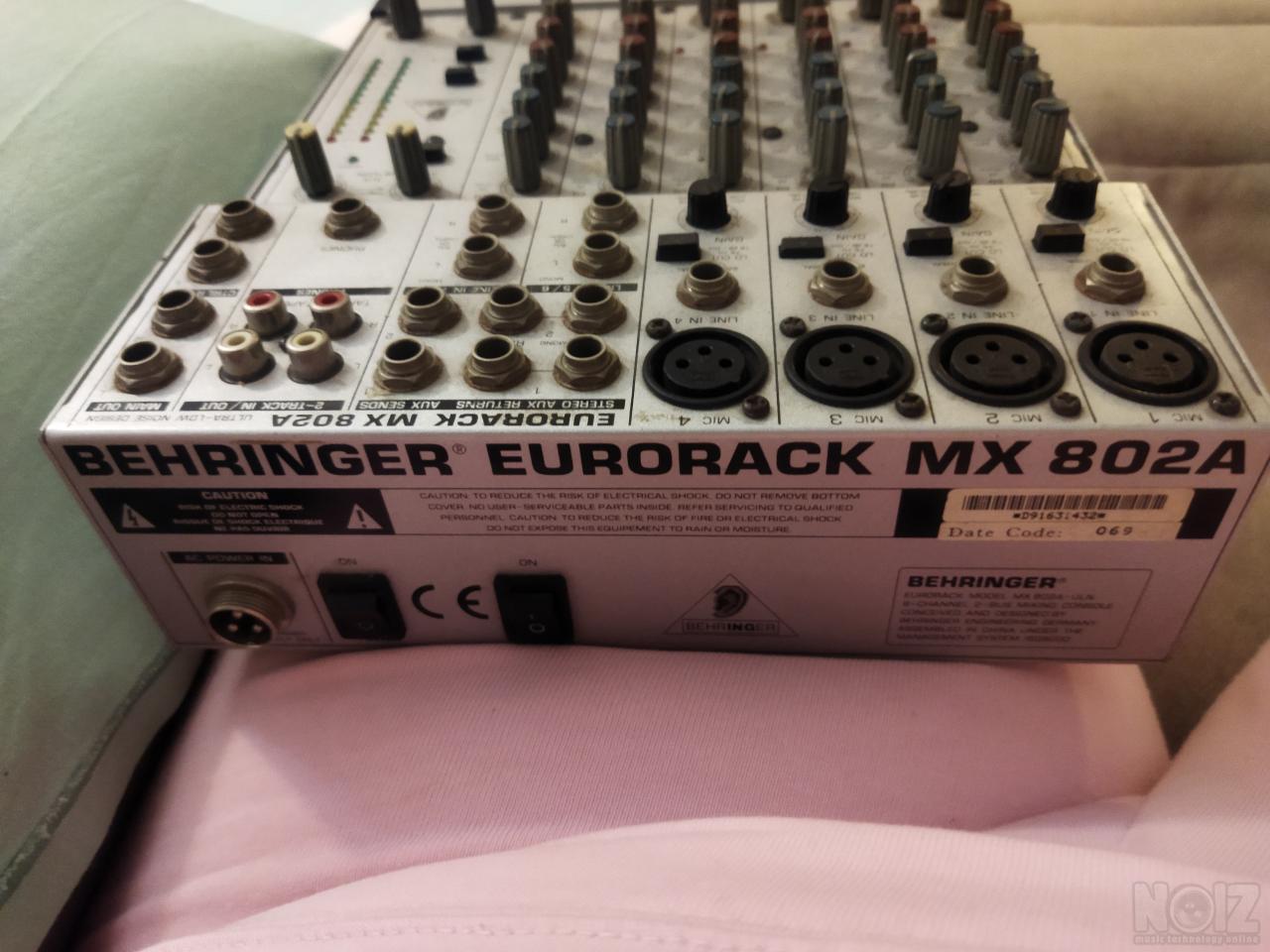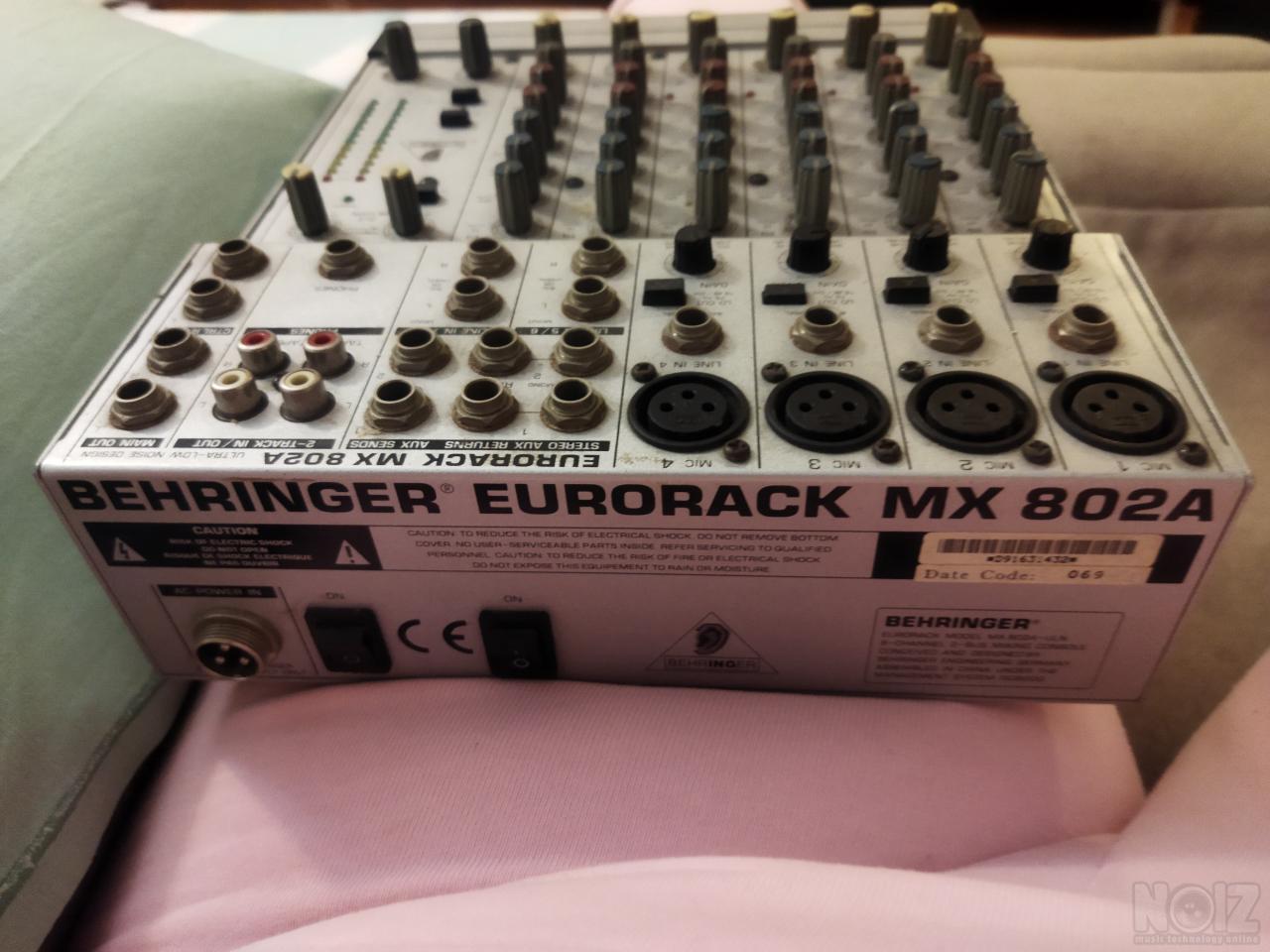 Το Behringer Eurorack MX 802A είναι μια μικρή τροφοδοτούμενη κονσόλα μίξης ήχου 8 καναλιών ιδανική για χρήση σε ζωντανές εμφανίσεις και στο studio.Χρησιμοποιειται για την μίξη και ηχογράφηση ήχου ,προσφέροντας 4 εισόδους μικροφώνου ,2 εισόδους phono και 8 εισόδους line.Διαθετει παρόμοια χαρακτηριστικά με μεγαλύτερες κονσόλες όπως ήχοπροενισχυτες μικροφώνου και μεγάλη δυναμική περιοχή (headroom).