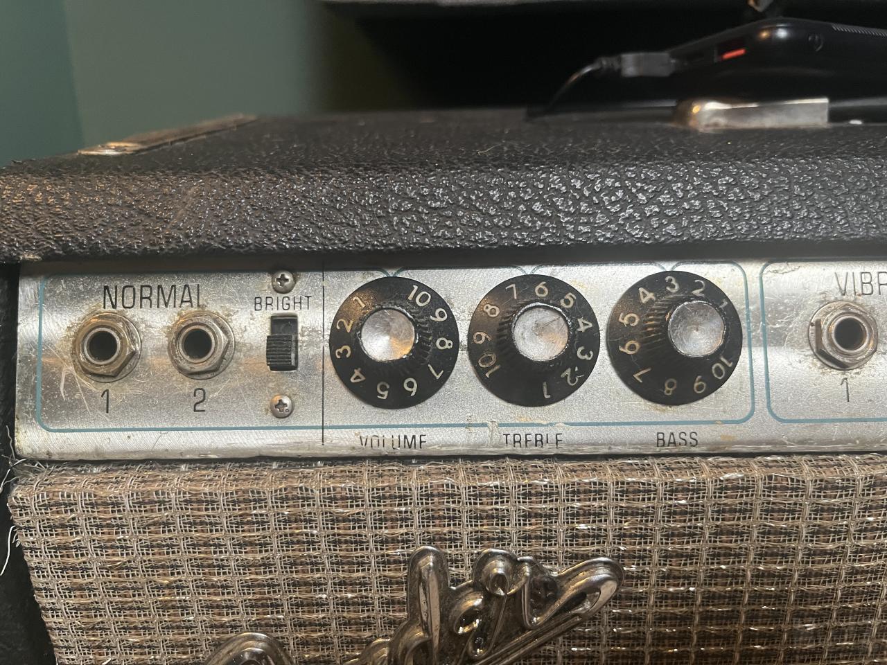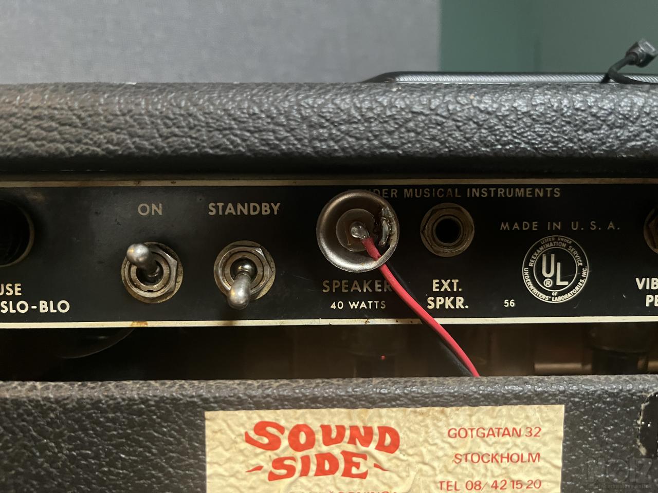 Πρόκειται για Blackface Super Reverb με front plate από Silverface, καθώς βγήκε τη χρονιά της μετάβασης από το ένα στο άλλο. (Το έχουμε ελέγξει και με το serial number αλλά και με το σχηματικό όταν του έγινε σέρβις από τον Δημήτρη των SideFX)