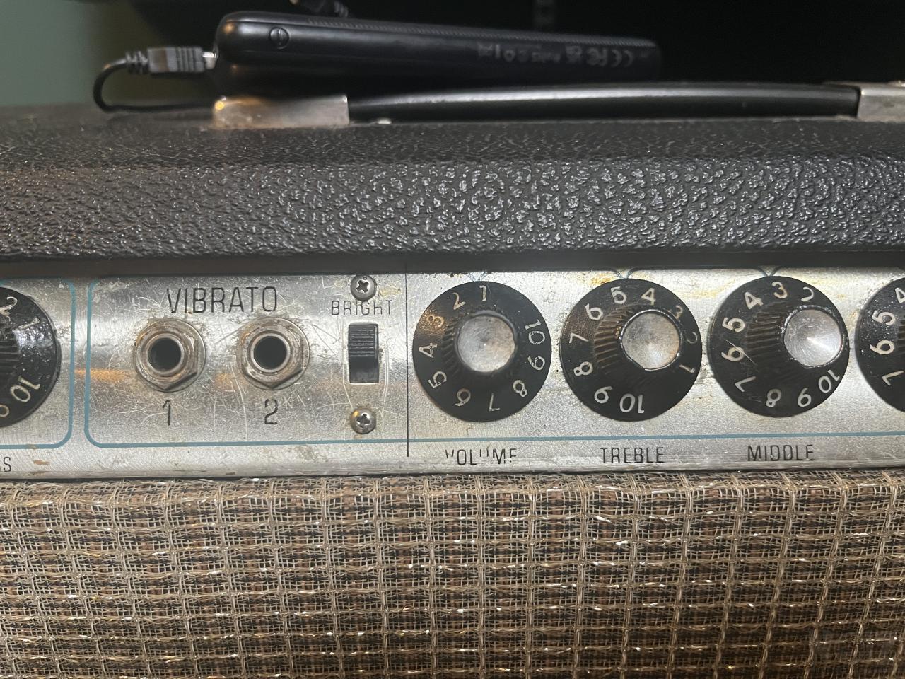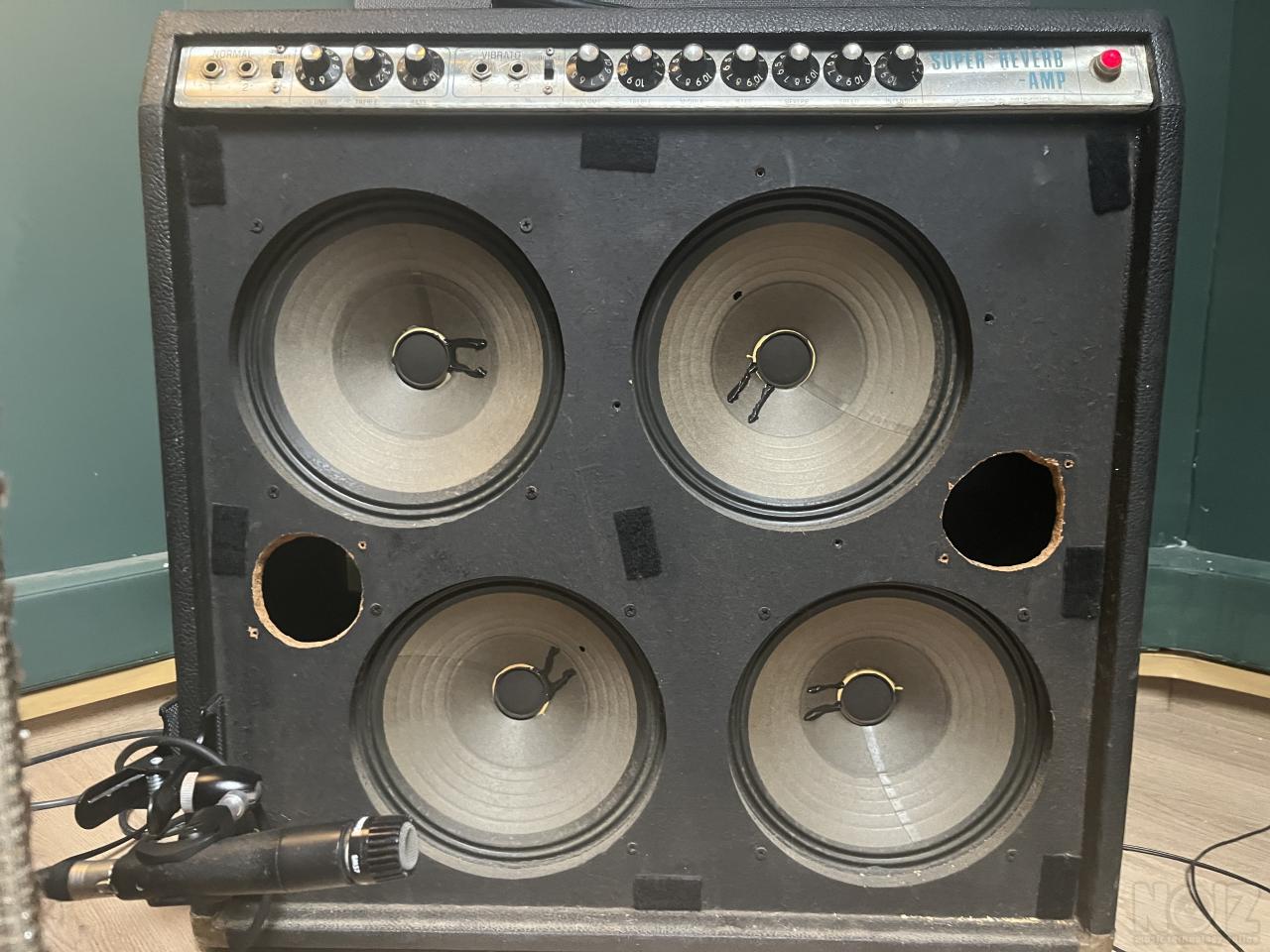 Πωλείται σε πάρα πολύ καλή κατάσταση για τα χρόνια του Fender Super Reverb του 1967 με καμπίνα του 1973 με 4 CTS Alnicο Ηχεία.